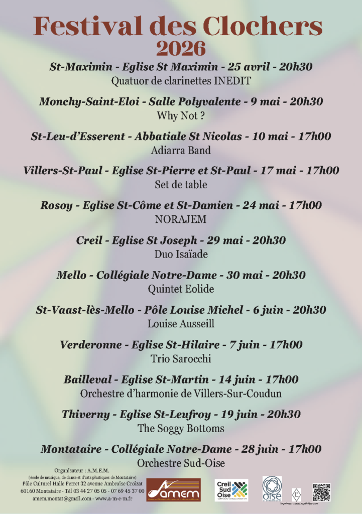 L’AMEM, l’Association Municipale d’Enseignement et d’Éducation Musicale de Montataire, vous invite à une soirée exceptionnelle dans le cadre du Festival des Clochers 2026.