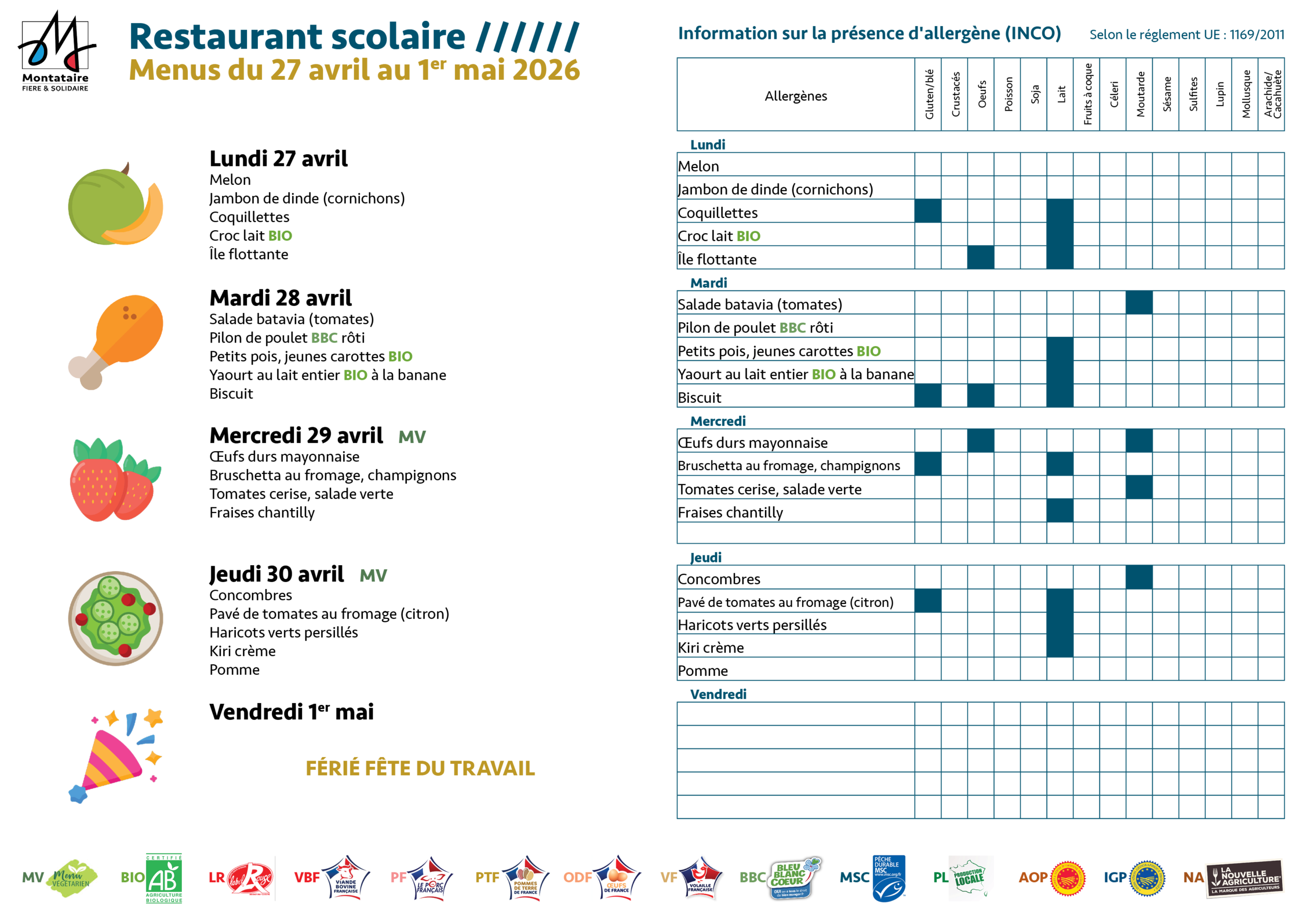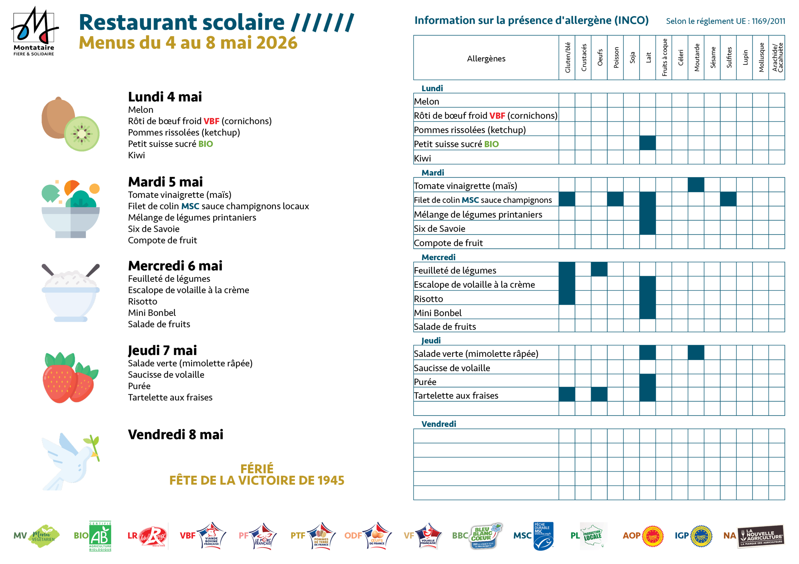 The price of a meal varies between 1.14 and €6.30 per meal, depending on the family's tax or non-tax assessment. This price differentiation means that the cost of a meal can be adapted to the financial resources of each household, guaranteeing that all pupils have access to a healthy and balanced diet.
